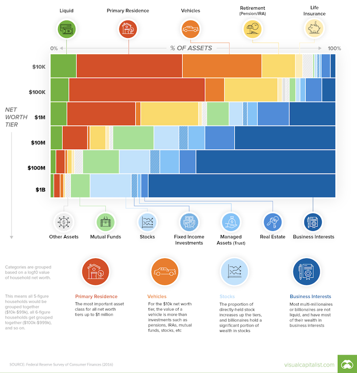 To come up with recommended net worth allocation models, we also need to first understand the typical net worth composition of the average American.